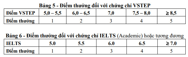 d) Thí sinh có chứng chỉ tiếng Anh VSTEP từ B2 trở lên, chứng chỉ tiếng Anh quốc tế IELTS (academic) từ 6.0 trở lên (hoặc chứng chỉ khác tương đương) được đăng ký xét tuyển vào các nhóm ngành Ngôn ngữ Anh, Kinh tế - Quản lý, Công nghệ - Quản lý giáo dục;