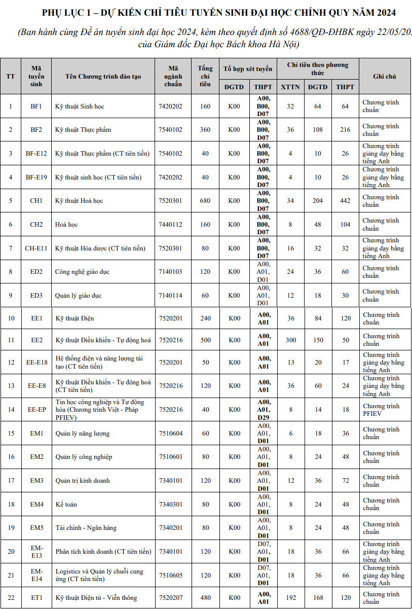 - Đăng ký trực tuyến: thí sinh truy cập đường link https://ts-hn.hust.edu.vn và làm thủ tục đăng ký trong khoảng thời gian từ 15/4/2024 đến 04/5/2024;
