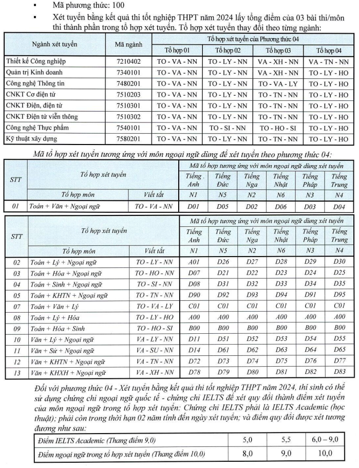 3.2. Phương thức, tổ hợp và ngành xét tuyển