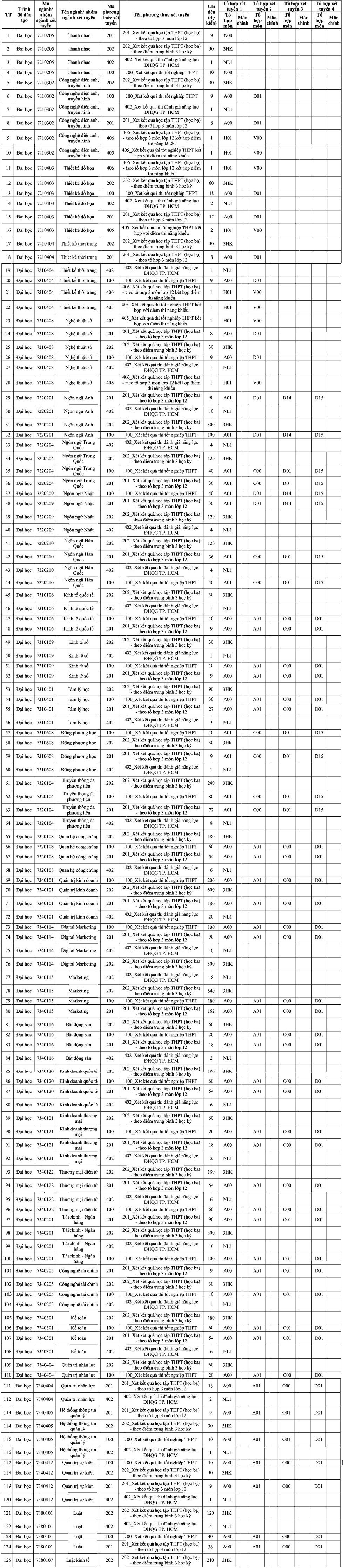 Đối với phương thức 4: Xét tuyển học bạ Trung học phổ thông theo tổng điểm trung bình 3 học kỳ (HK1, HK2 lớp 11 và HK1 lớp 12)