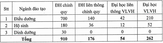 THÔNG TIN TUYỂN SINH ĐẠI HỌC ĐIỀU DƯỠNG NAM ĐỊNH NĂM 2024: Chỉ tiêu tuyển sinh: