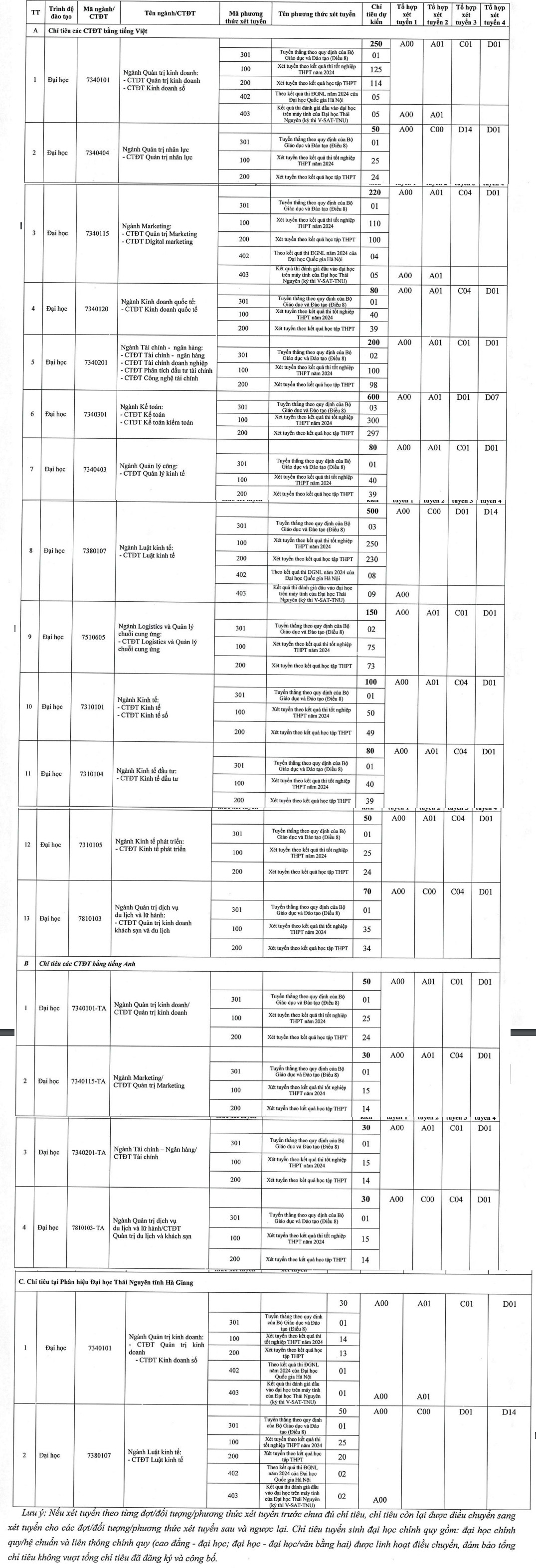 3. Chỉ tiêu tuyển sinh: 2.650, trong đó có 20 chỉ tiêu xét tuyển các ngành đào tạo đại học hệ chính quy năm 2024 cho học sinh Trường Dự bị Đại học Dân tộc Trung ương.