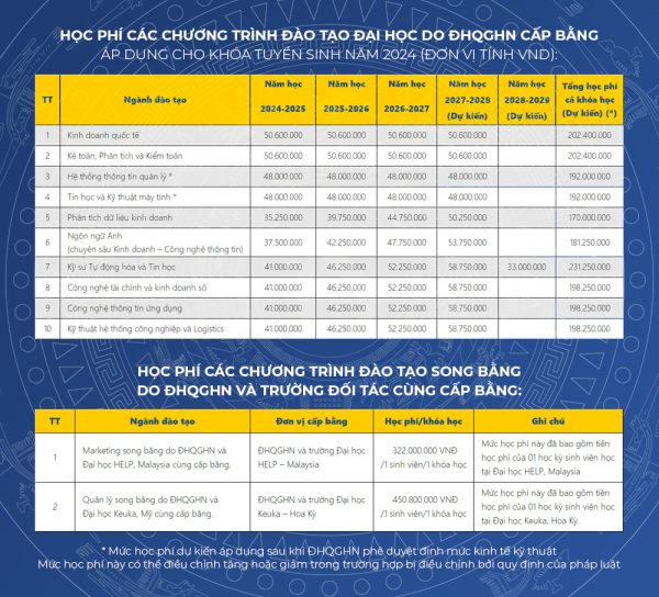 Xét tuyển thẳng và ưu tiên xét tuyển theo quy định của Bộ GD&ĐT và quy định của ĐHQGHN